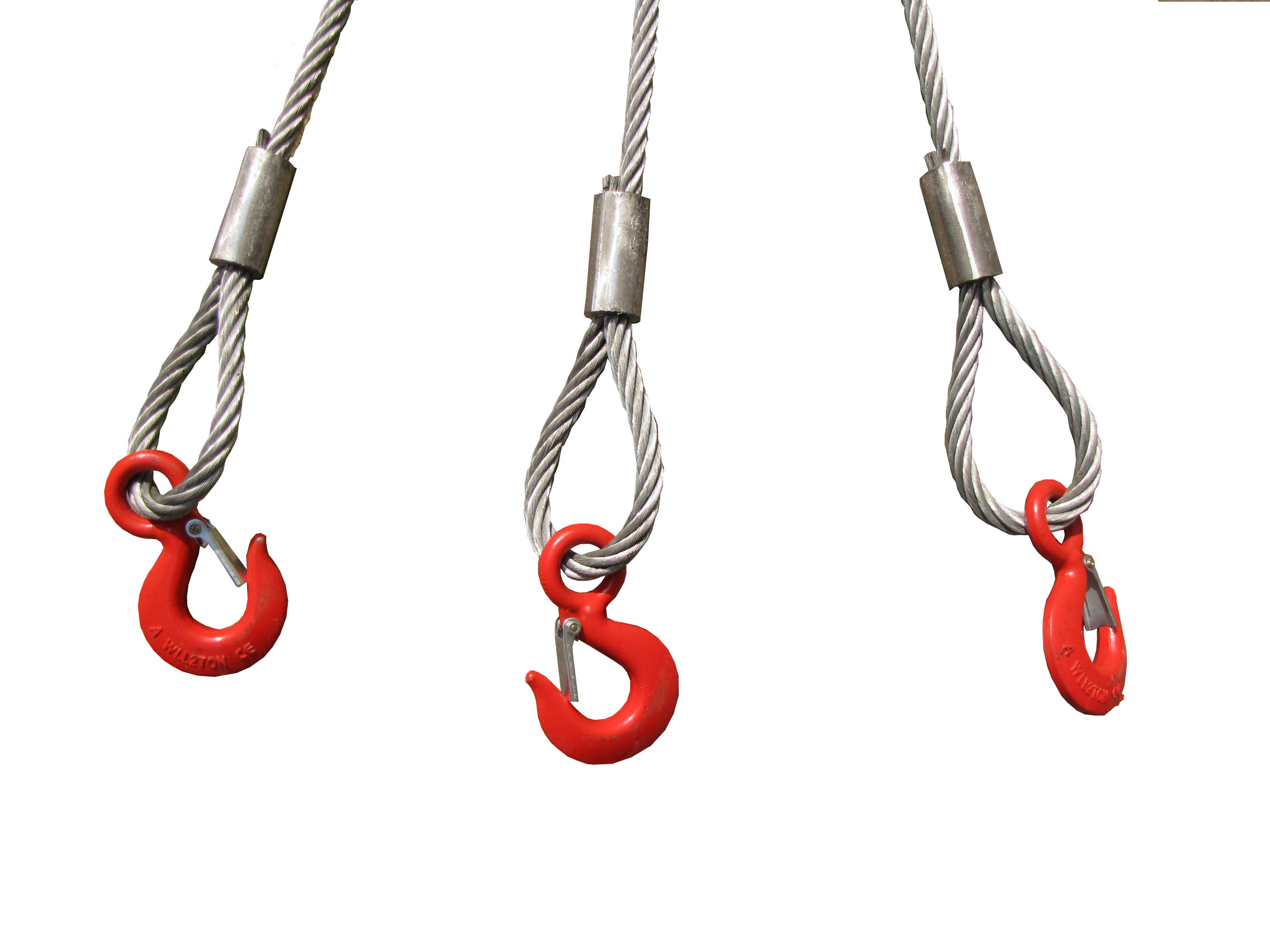 钢丝绳索具具有强度高、自重轻、工作平稳、不易骤然整根折断等特点,广泛应用于钢铁、化工、运输、港口等行业。使用注意事项有:若为单腿吊装,吊挂点必须垂直位于被吊物重心的正上方;若为双腿吊装,吊挂点应位于货物两边,吊钩在被吊物重心的上方;若为三腿或四腿吊装,吊挂点必须匀称的位于货物周围的平面上,且吊钩位于被吊物重心的正上方。