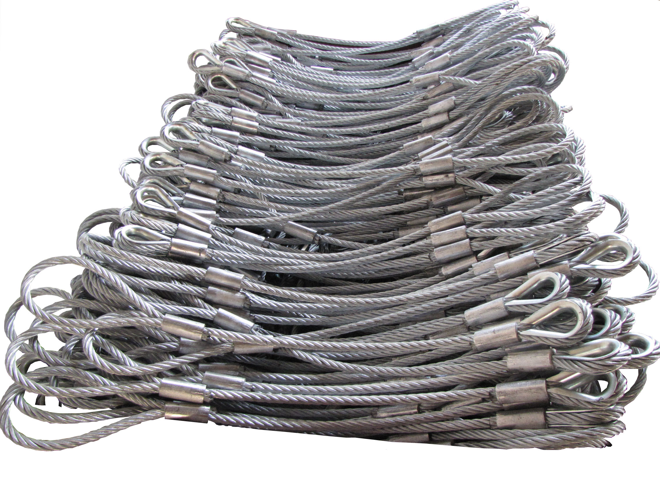 3 压制钢丝绳索具主要用在吊运,拉运等需要高强度线绳的运输中,在使用过程中被吊物下严禁站人或在物体上经过。